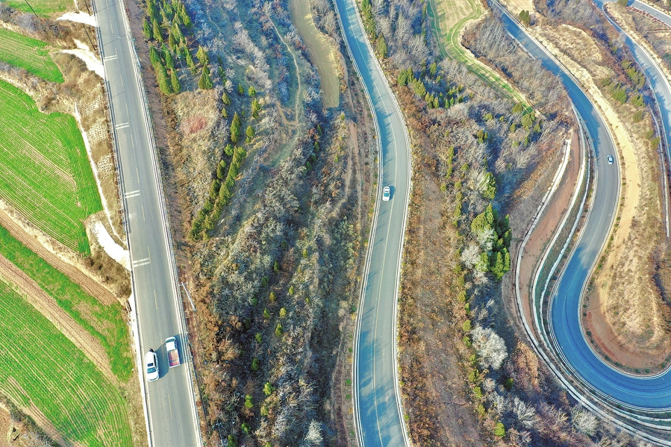 12月18日,汽车行驶在平陆县杜马乡境内的公路上。今年以来,平陆县大力实施交通强县战略,先后争取资金1.26亿元,开建12条总长57公里的乡村公路,着力构建“以路兴乡村、以路拓农业”的发展格局。(郝健摄)