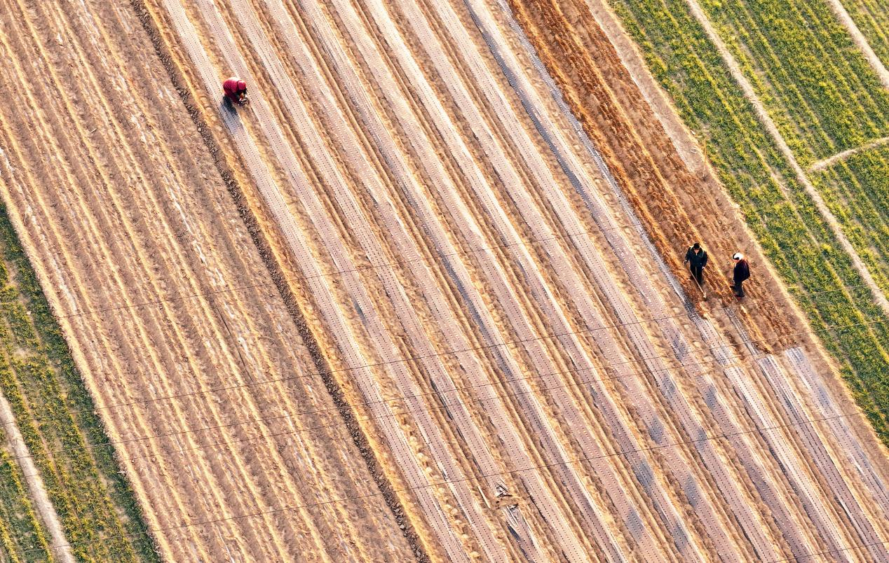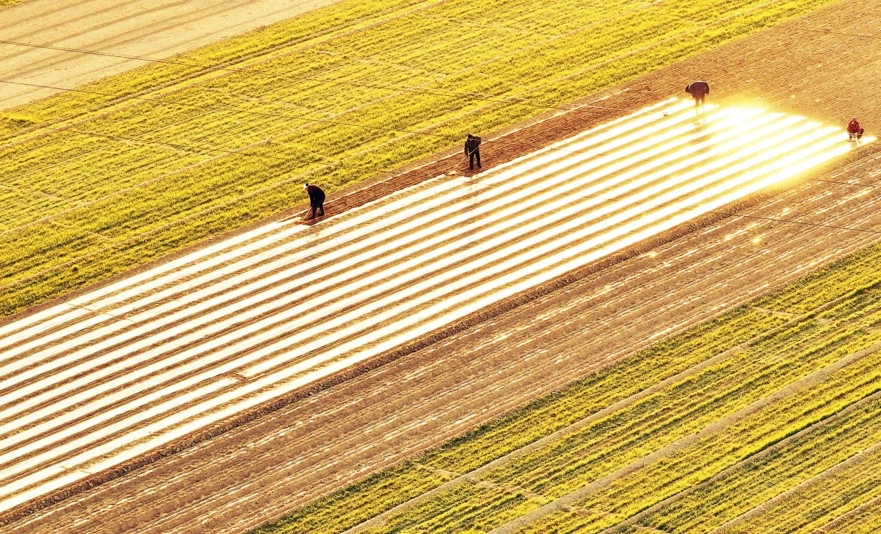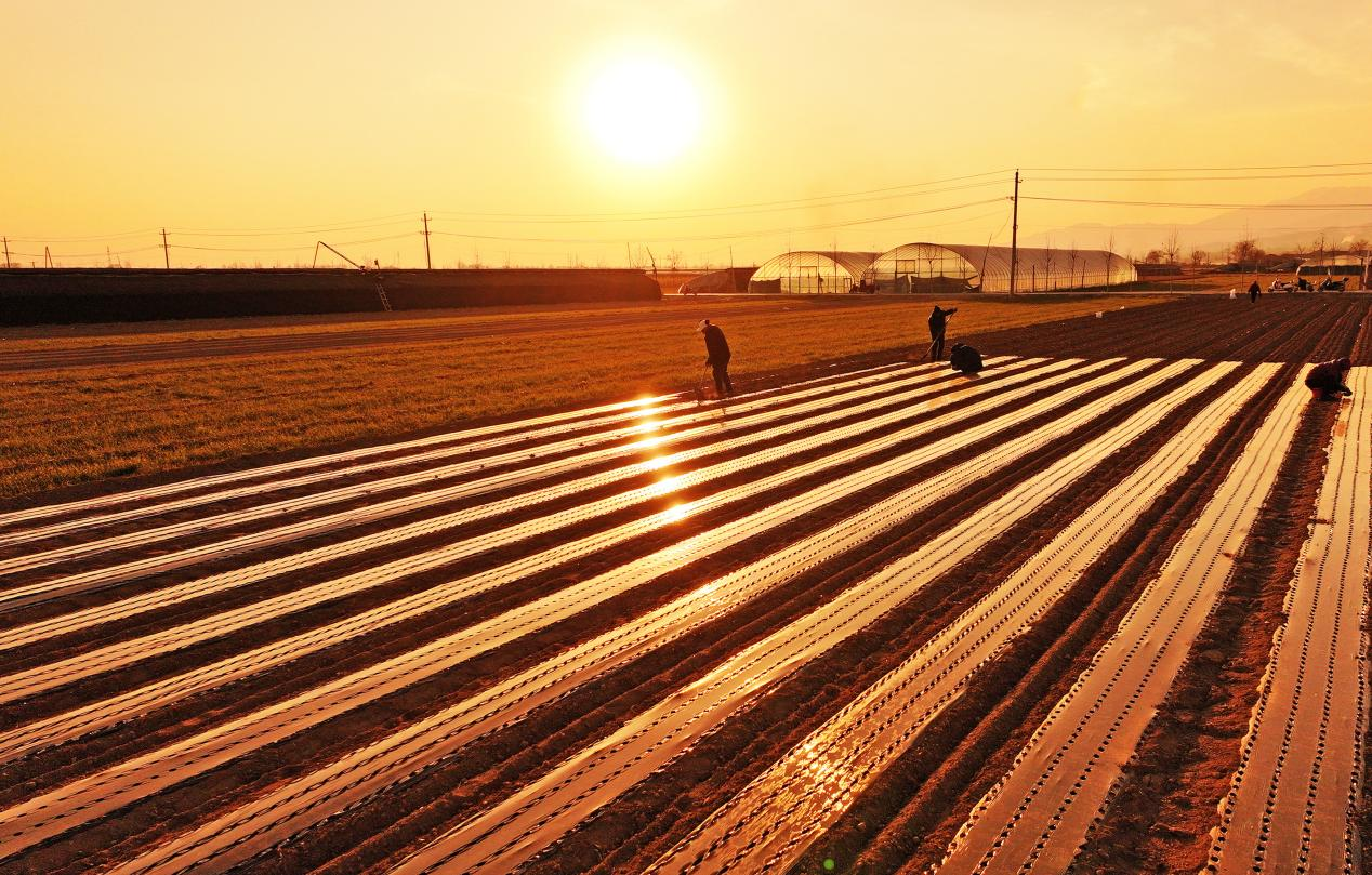 冬至时节,在山西省运城市新绛县北张镇北杜坞村,药农们抢抓农时,采用地膜覆盖白术等中药材,确保稳产增收。