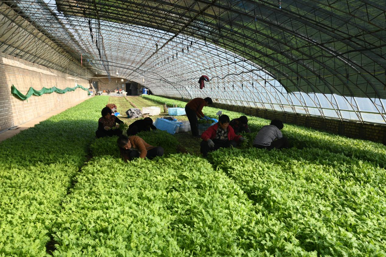 近日,运城市闻喜县桐城镇邱村口福蔬菜专业合作社的蔬菜生产基地温室大棚内的茼蒿、生菜、香菜、菠菜等蔬菜长势茂盛,陆续上市,将为闻喜县春节市场和太原、石家庄、北京、内蒙古等外地客商提供鲜菜货源。