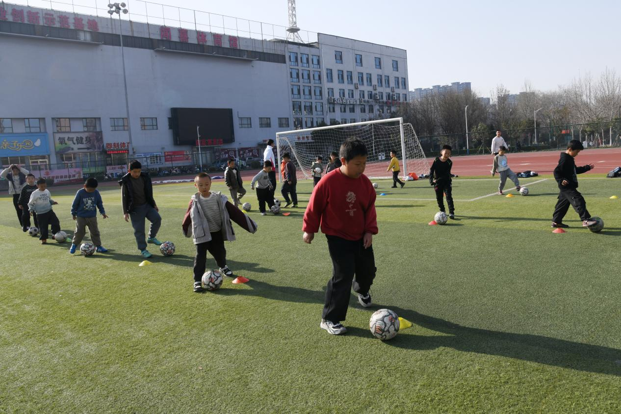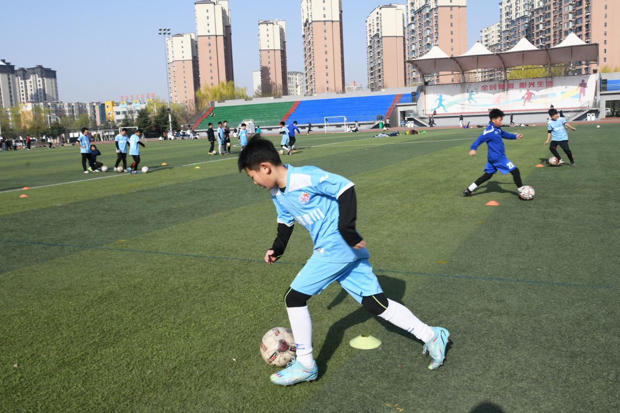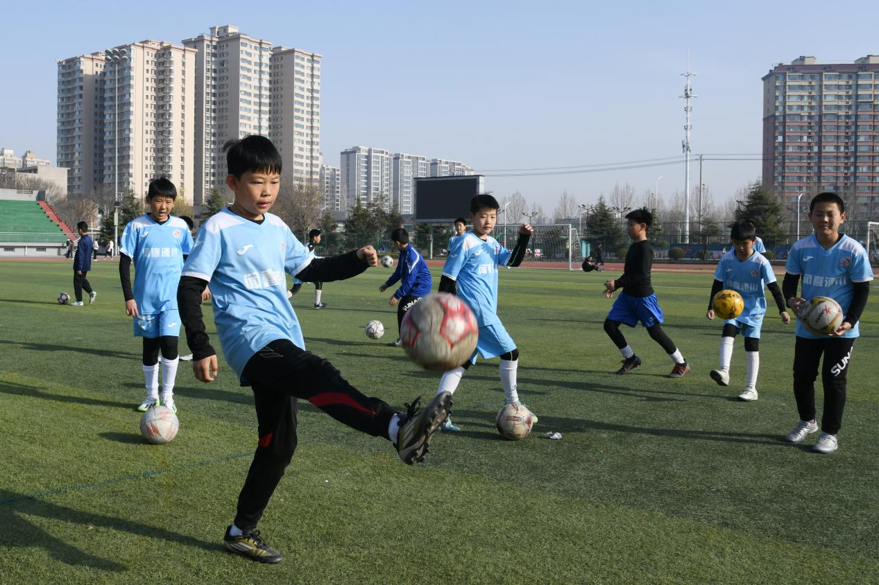 3月23日,运城市闻喜县中小学的学生们在涑水公园体育中心足球场进行足球训练。这是闻喜县全力推进县域体育事业蓬勃发展的具体实践之一。