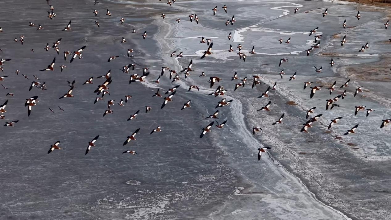 近期,随着气温日渐回暖,大同市天镇县南洋河湿地迎来一群特殊的“客人”——赤麻鸭。它们为当地增添生机的同时,也成了天镇县生态治理成效的活态名片。