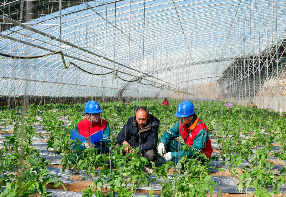 电力工作人员在蔬菜大棚开展服务。(张唯 摄)