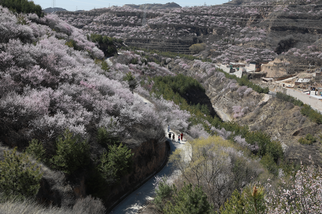 春意融融万物苏,又到桃花盛开时。近日,在山西省吕梁市柳林县于家沟村,漫山的桃花灼灼绽放,灿若云霞,吸引众多游客前来赏花踏春,感受美好时光。