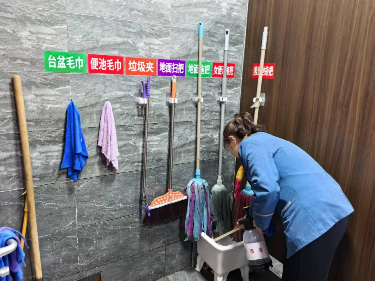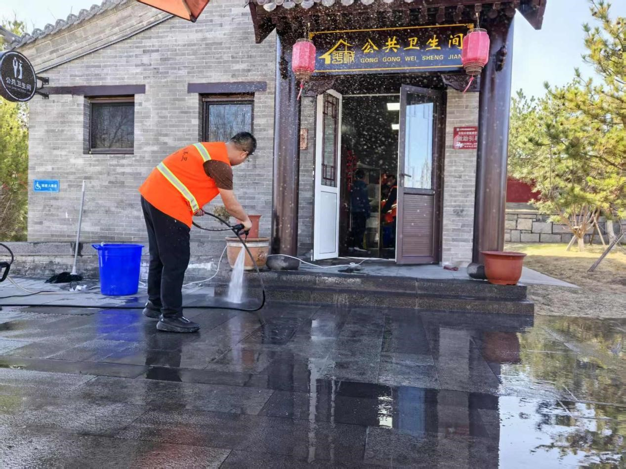 此次整治行动采用精细化作业模式,工作人员在公共卫生间外围利用高压水枪对墙壁、地面进行全面冲洗,有效清除顽固污渍、积尘,让建筑外立面焕然一新,清洁工人在内部进行深度保洁,保障无死角、无异味,实现从地面到墙面、从设施到空气的全方位清洁。
