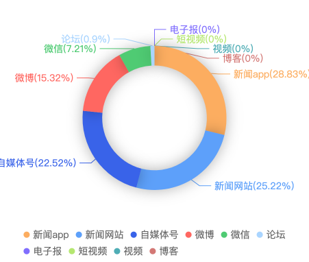 截至目前,该文章在互联网上传播总量共111篇。其中,6月9日是传播的高峰期,共传播52篇文章。各信源的信息发布情况中,APP占比最大,其次是新闻网站和自媒体号,占比分别为28.83%、25.22%、22.52%。(数据来源:新华睿思·数媒智慧分析平台)