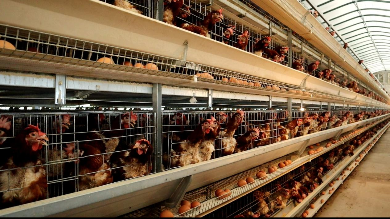 在这里,工作人员会定期巡查鸡舍,观察蛋鸡健康状况;自动喂料机和饮水线全天候供应营养均衡的饲料和清洁饮水;产下的鸡蛋通过滚槽自动收集。