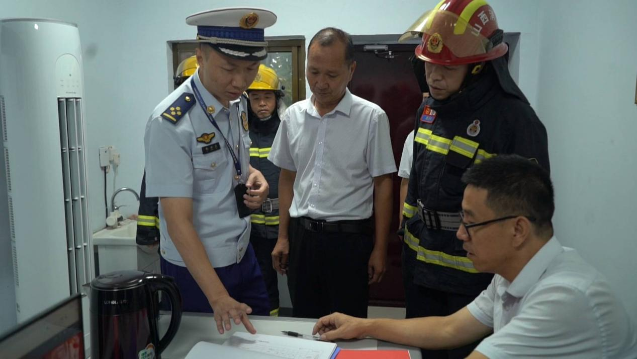 消防监督人员正在检查景区消防工作。