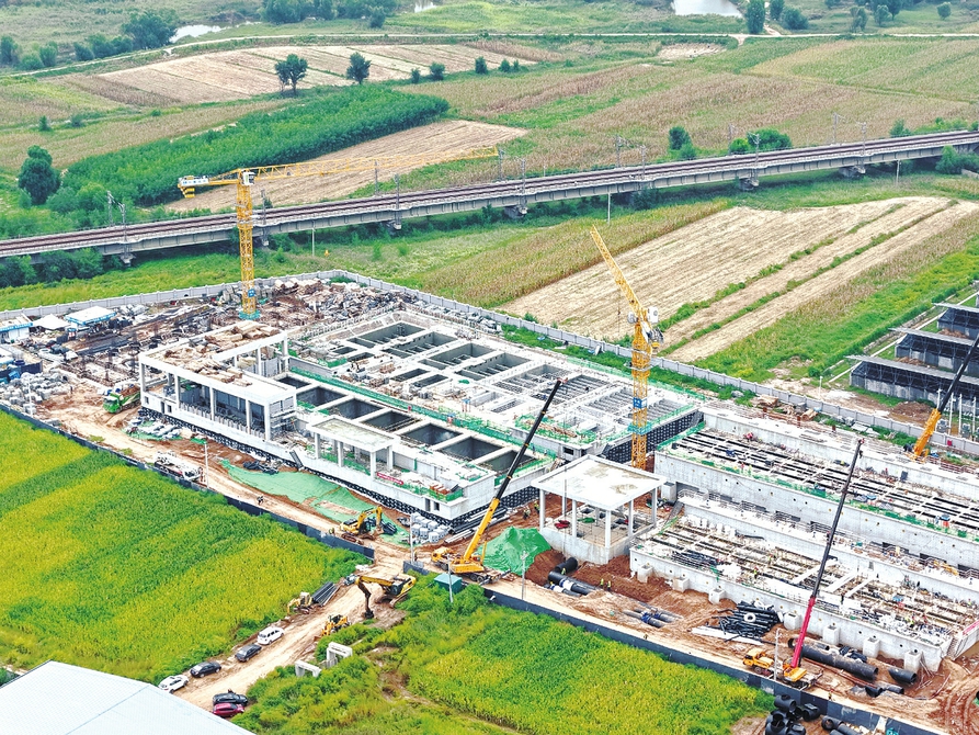 图①:10月3日,山西转型综改示范区汾东污水处理厂水质提升项目建设现场一派繁忙。(记者王瑞瑞摄)