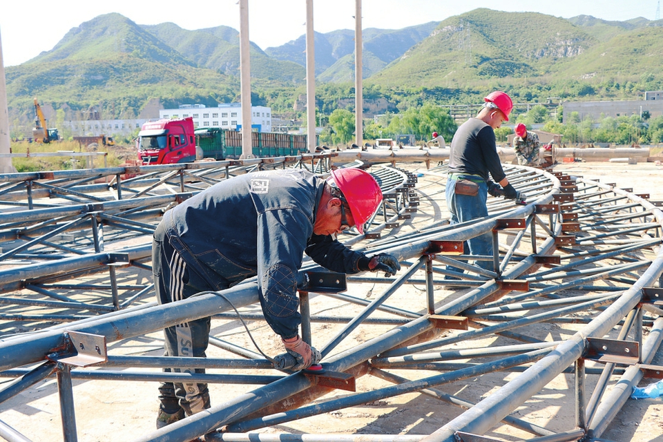 图③:昔阳经开区内,施工人员正在进行打磨作业。(通讯员摄)