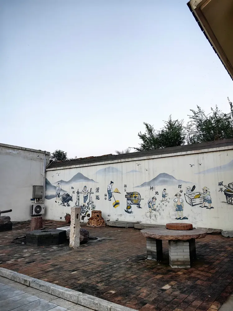 走进古浮图村,金黄的玉米、饱满的柿子装饰着村庄,随处可见丰收的景象,农耕文化宣传墙绘制着灌溉、晒谷、打谷、扬尘、碾米等农耕生活场景。
