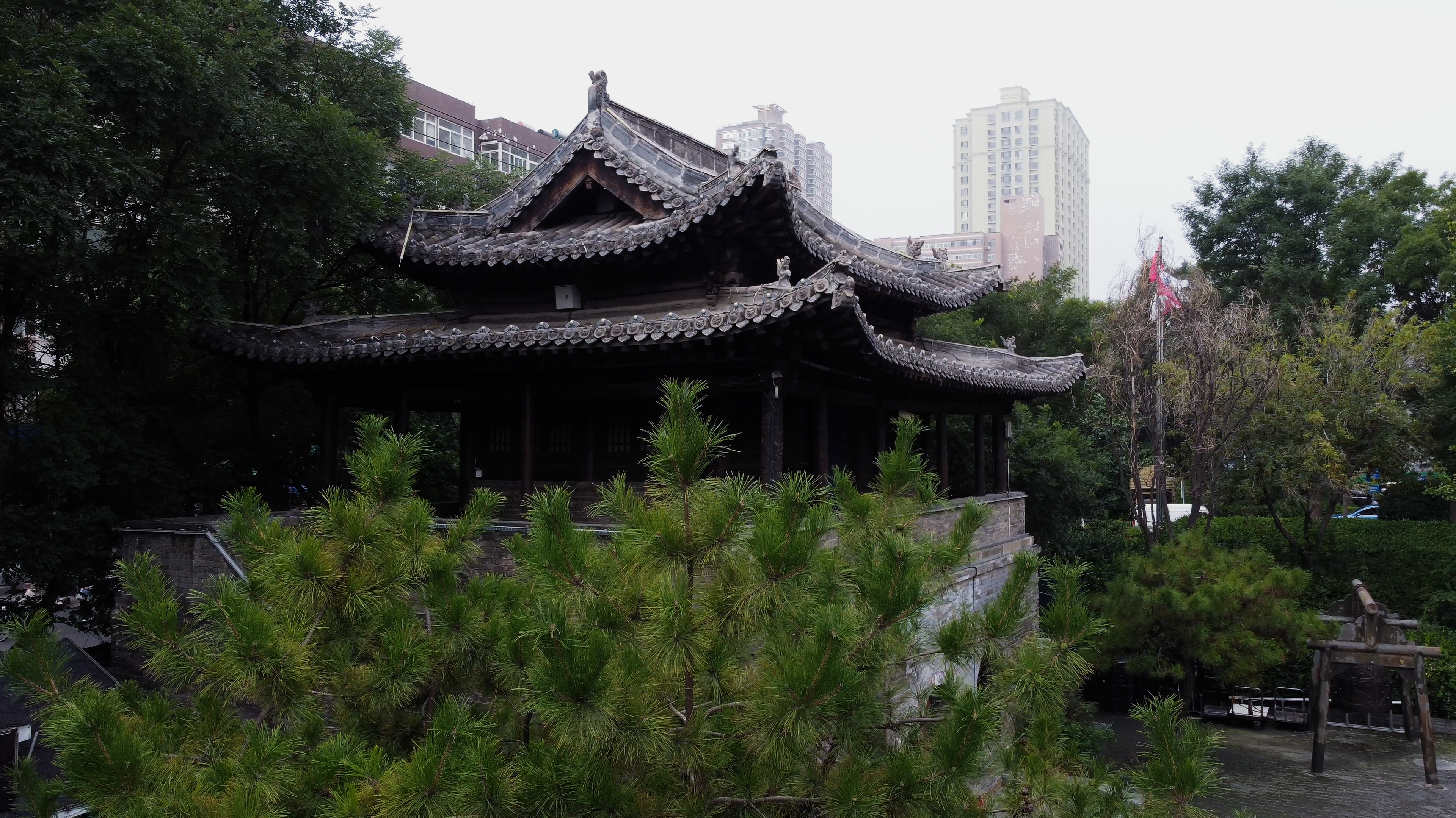 转角遇见的城隍庙与玻璃幕墙的万达广场静静对望