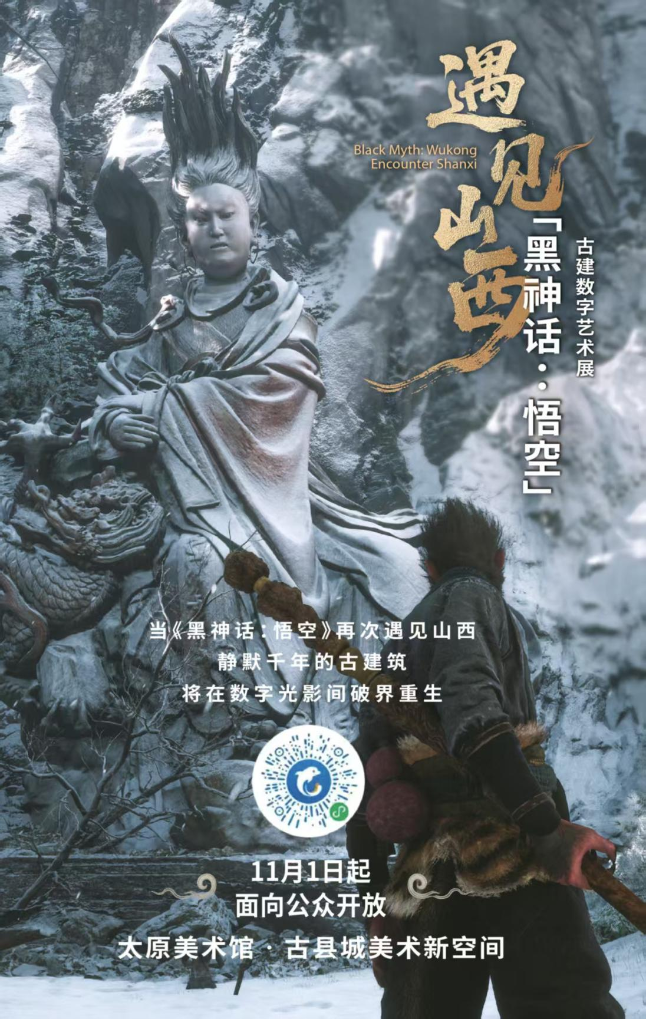 据了解,11月1日,「黑神话:悟空」遇见山西——古建数字艺术展将在山西太原正式与各位“天命人”见面,展览是全球少有的“游戏IP”与“古建文化”深度融合的数字艺术空间。该展由新华网、新华社山西分社、杭州游科互动科技有限公司、山西鹏飞集团共同主办。