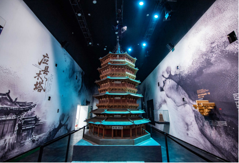 展览现场,一座高5.5米的应县木塔模型尤为引人注目。该模型由非物质文化遗产项目代表性传承人纯手工雕刻而成,并借助数字光影技术动态呈现四季更迭、日月星辉的时空流转,使千年古塔的结构美学与生命韵律跃然眼前。杨霞在参观中表示,展览以“可触可感”的匠心营造,让古建筑不再只是静止的遗产,而成为贯通古今的活态文化现场。