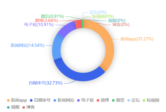 截至目前,该文章在互联网上传播总量共110篇。各信源的信息发布情况中,新闻APP占比最大,其次是自媒体号。(数据来源:新华睿思·数媒智慧分析平台)