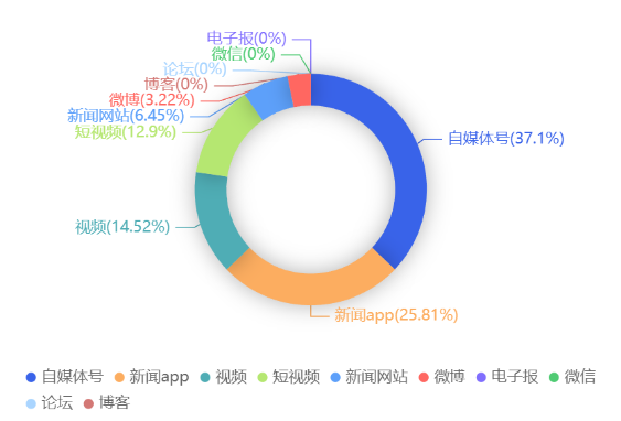截至目前,该文章在互联网上传播总量共56篇。各信源的信息发布情况中,新闻APP占比最大,其次是自媒体号。(数据来源:新华睿思·数媒智慧分析平台)