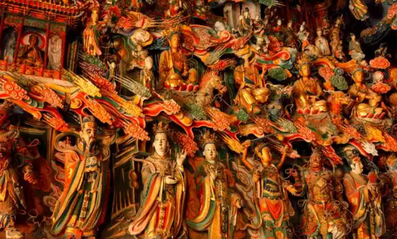 观音堂正是其中之一。在正殿内,泰国留学生陈美悦正在聚精会神地欣赏墙壁上的佛教彩塑。“这里的雕塑造型优美、色彩鲜艳,在昏暗的室内也好像闪耀着光芒。很难想象古代的工匠如何制作这些精致的艺术品。”她赞叹道。