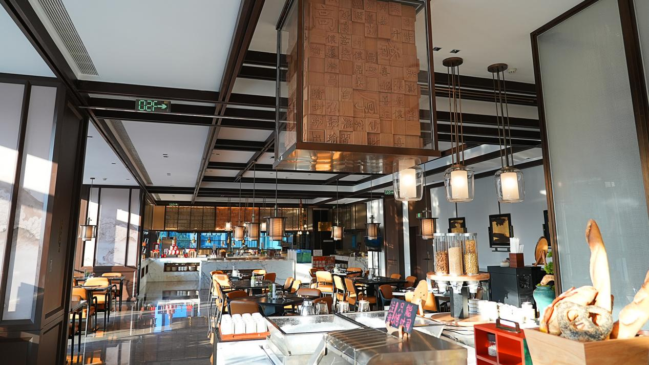 在二层晋荟全日餐厅,百家姓木纹装饰里藏着巧思;三层晋御轩根祖厅,墙面以精湛木刻工艺镌刻着137个姓氏,呼应从大槐树迁出的姓氏历史。而每一个姓氏背后,都是一个家族迁徙繁衍的故事,让客人在一餐一食间悄然感知“同根同源”的默契。