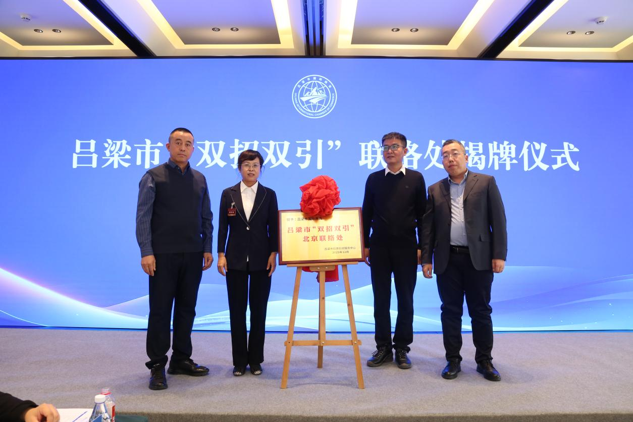 12月6日,由吕梁市国际商会主办、吕梁市招商引资服务中心协办的吕梁市“双招双引”北京联络处揭牌仪式暨产业合作对接会在北京举行。吕梁市12个县(市、区)的有关部门、各省级开发区(示范区)管委会及招商部门负责人,以及京津冀地区的企业家、科研院所专家、学者等百余人参加。