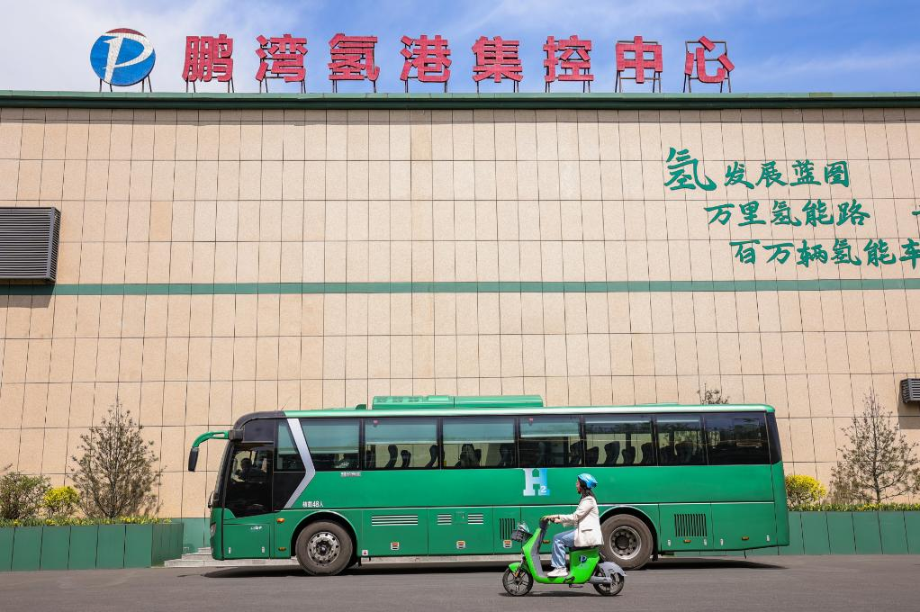 山西鹏飞集团内的氢能共享单车和氢能大巴。新华网 发