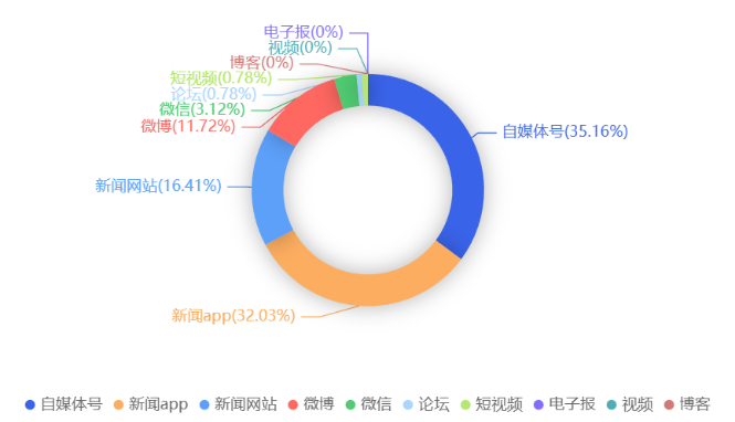 截至目前,该文章在互联网上传播总量共128篇。各信源的信息发布情况中,自媒体号占比最大,其次是新闻APP。(数据来源:新华睿思·数媒智慧分析平台)