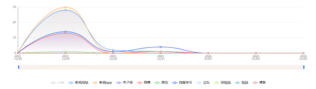 截至目前,该文章在互联网上传播总量共30篇。各信源的信息发布情况中,自媒体号占比最大,其次是新闻APP。(数据来源:新华睿思·数媒智慧分析平台)