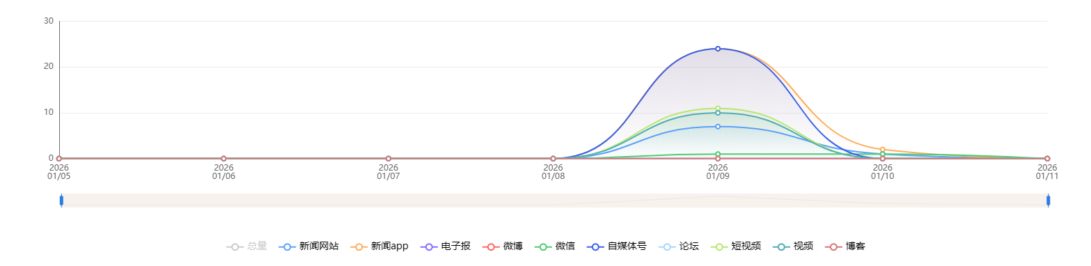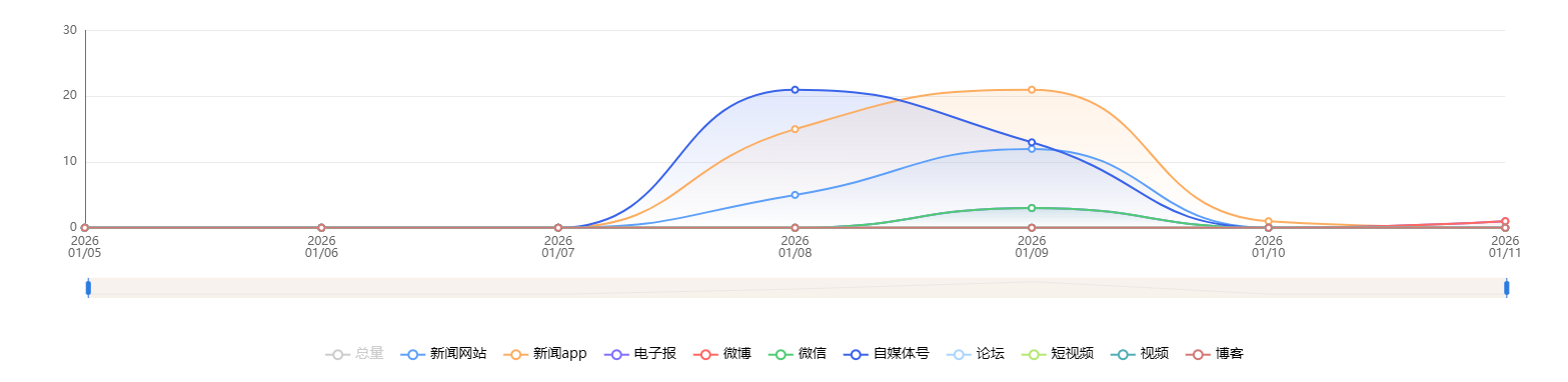 截至目前,该文章在互联网上传播总量共9236篇。各信源的信息发布情况中,微博占比最高,其次是自媒体号。(数据来源:新华睿思数据云图分析平台)