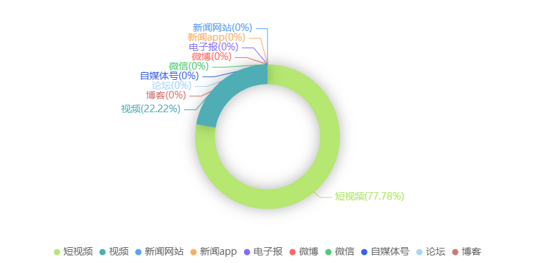 截至目前,该文章在互联网上传播总量共9篇。各信源的信息发布情况中,短视频占比最高。(数据来源:新华睿思数据云图分析平台)