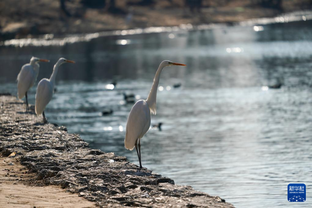 冬日,成群的白鹭在位于山西省太原市的汾河湿地公园内嬉戏、觅食,吸引不少市民驻足观赏。近年来,随着汾河流域生态环境不断改善,越来越多的候鸟选择在这里栖息越冬。(记者杨晨光)