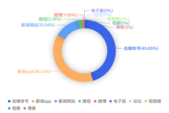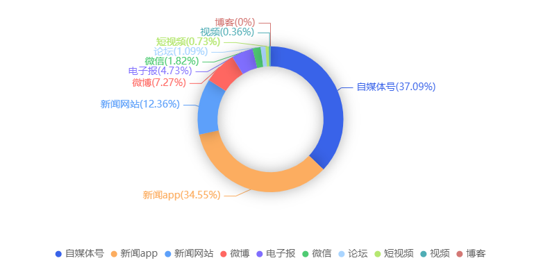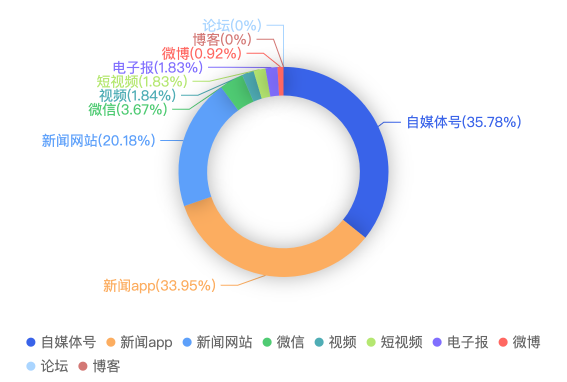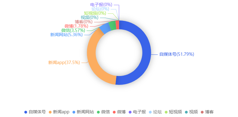 截至目前,该文章在互联网上传播总量共56篇。各信源的信息发布情况中,自媒体号占比最大,其次是新闻APP。(数据来源:新华睿思·数媒智慧分析平台)