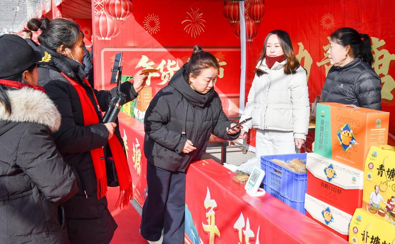 据了解,魅力青塘年货大集暨网红大赛为期十五天,将陆续开展年货展销与直播带货活动。参加展销的60多家农产品加工企业携100余种农特产品集中亮相,吸引了众多参观者驻足选购。线下设置有农品展销区、网红直播区、互动体验区等功能板块,集中展销土鸡土鸭、红枣、粉条、辣椒酱、年馍、窗花等百余种本地农特产品和非遗年货。同时,50余名参赛网红达人将在线上开展助农直播。