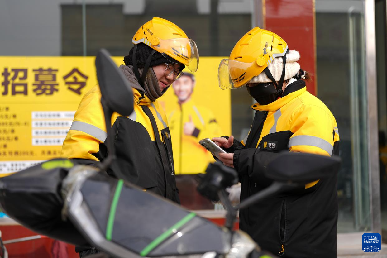 戚德敏在山西省太原市小店区的一处商圈等待订单(1月29日摄)。新华社记者 杨晨光 摄