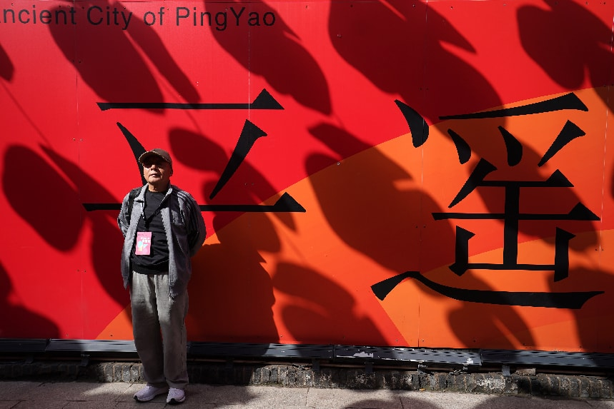 参观者在平遥国际摄影大展上留影。新华社记者 詹彦 摄