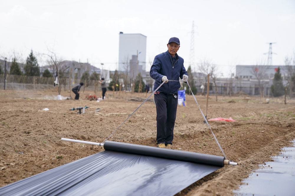 地膜铺好了,高东元跪在菜畦边,小心翼翼地用土把边缘压实。看着眼前的菜地,高东元笑着说:“清明过后,菜椒、茄子就都可以种了。”他的眼神里,盛满了对岁稔年丰的期盼。