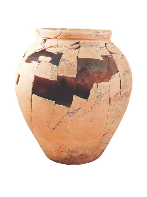 修复前的绳纹陶罐。