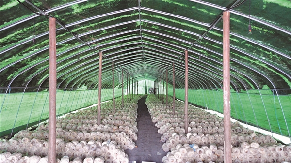 标准化蘑菇大棚内摆放整齐的菌棒。通讯员 李 鹏 摄