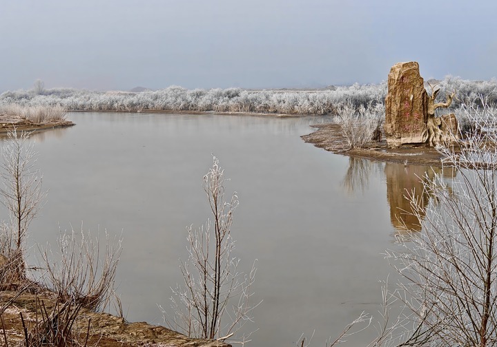 大同御河与桑干河交汇口早春清晨景观。(新华每日电讯记者王皓摄)