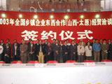| · | 10∶40左右进行了2003年全国乡镇企业东西合作(山西太原)经贸洽谈暨产品展销会首批项目的签约仪式:( 2003-09-03 10:39:38) |